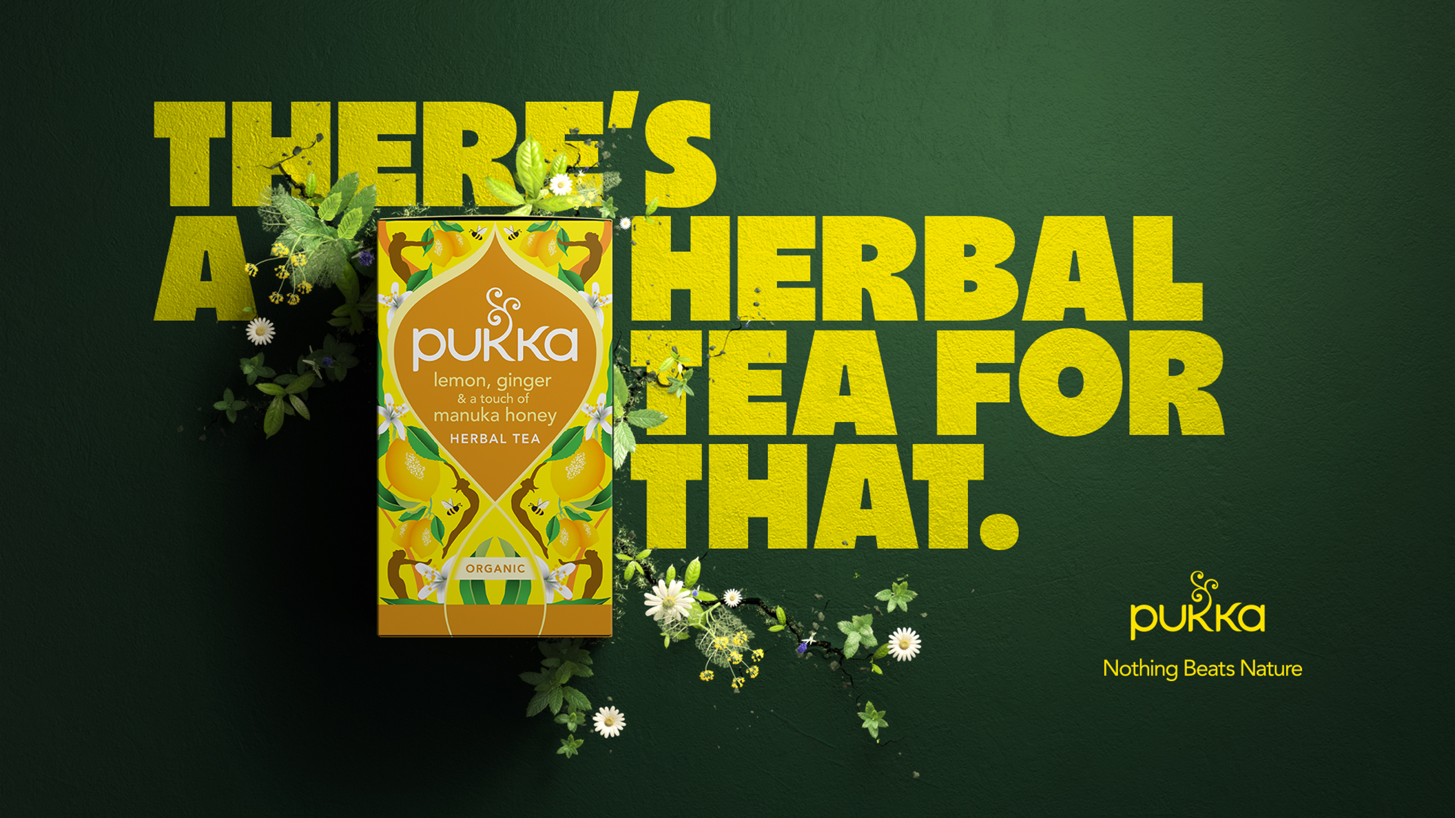 Wellness. Used to be pretty simple, now it’s gone all fads schmads. So Pukka are preaching a simpler approach, one cup of herbal goodness at a time. Because Nothing Beats Nature. (Once again, we apologise to the actress in this. It was a lot.)
